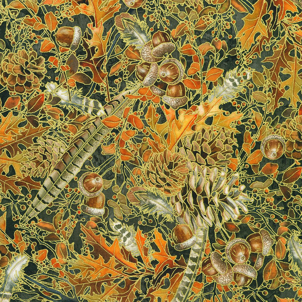 Robert Kaufman Fabrics Lynnea Washburn Warm Welcome Feathers and Acorns - Charcoal 22964-184