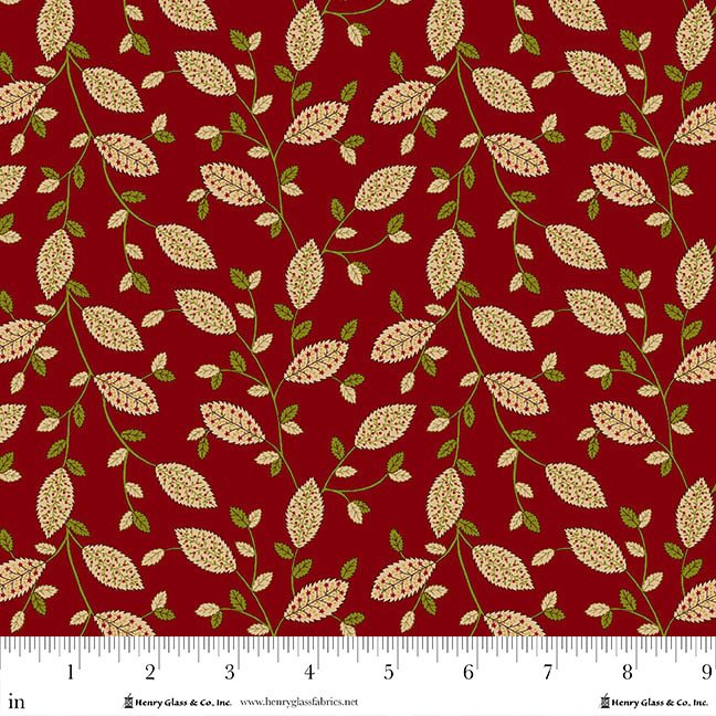 Henry Glass & Co. Kim Diehl Baubles & Balsam Fancy Holiday Leaves - Cranberry 980-88