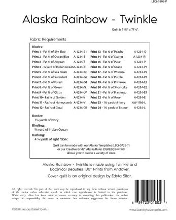 ALASKA RAINBOW-TWINKLE PATTERN BY LAUNDRY BASKET QUILTS